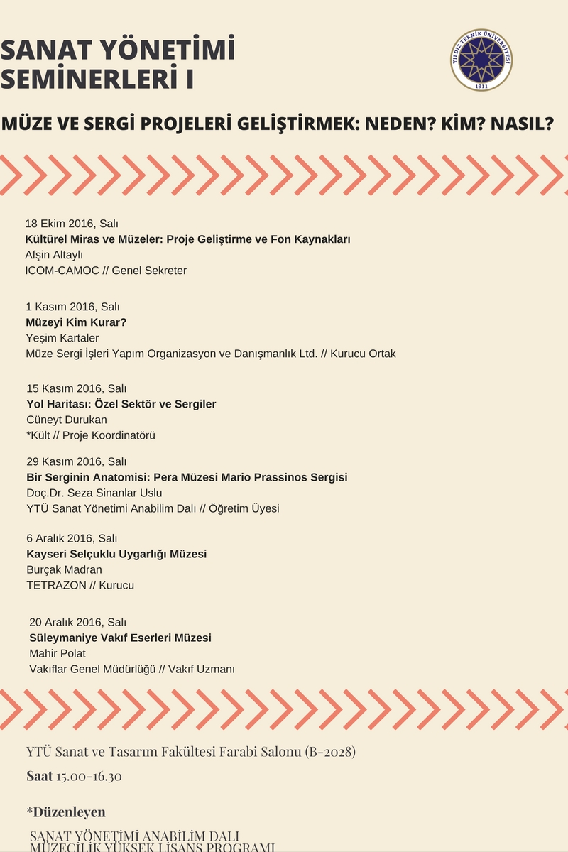Sanat Yönetimi Seminerleri 1: Müze ve Sergi Projeleri Geliştirmek: Neden? Kim? Nasıl? başlıklı seminer dizisi