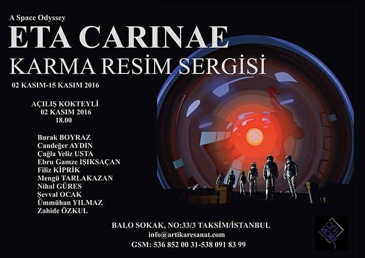 S.Y.A.D. öğretim elemanlarımızdan Arş. Gör. Burak BOYRAZ'ın bir adet küçük ebatlı çalışmasıyla yer aldığı A Space Odyssey: ETA CARINAE adlı karma sergi, 02-15 Kasım 2016 tarihleri arasında ARTI KARE SANAT GALERİ'de görülebilir.